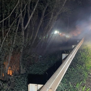 Um incêndio em área de vegetação às margens da BR-163 mobilizou equipes do Corpo de Bombeiros e da Polícia Rodoviária Federal (PRF) na noite desta segunda-feira (24), na região de São Luiz, próximo à divisa entre os municípios de Marechal Cândido Rondon e Mercedes.