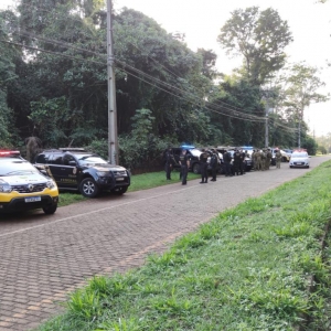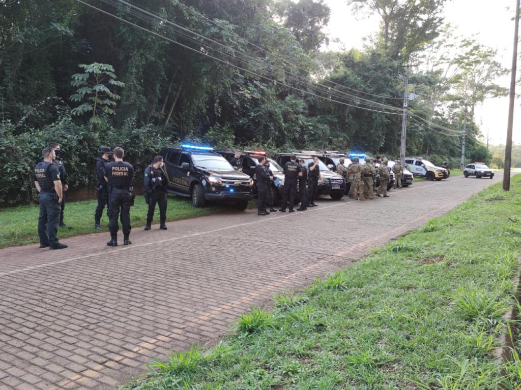 A Polícia Militar também está nesta ação junto a Polícia Federal.