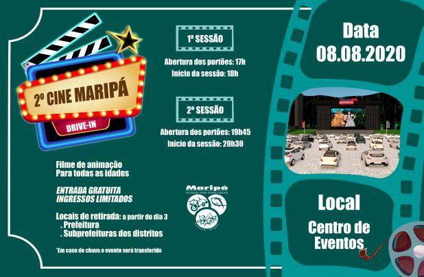 Os ingressos para o 2º Cine Maripá Drive-in estão disponíveis para retirada a partir desta segunda-feira (3) na prefeitura e nas subprefeituras dos distritos.