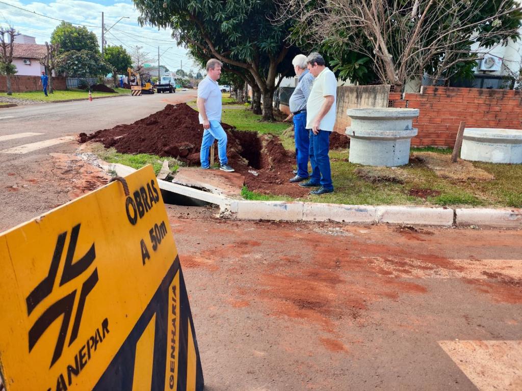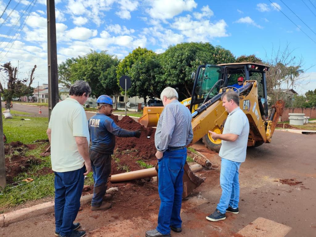 Na tarde de ontem (16), o prefeito Lari Hitz, acompanhado do vice-prefeito Roque Lorenzatto e do secretário de Finanças, Jairon Arndt, vistoriou o andamento das obras, que estão concentradas na região próxima ao cemitério municipal. A empresa está realizando escavações em diversos pontos, com o objetivo de montar as estruturas necessárias para a interligação das residências à rede coletora de esgoto.
