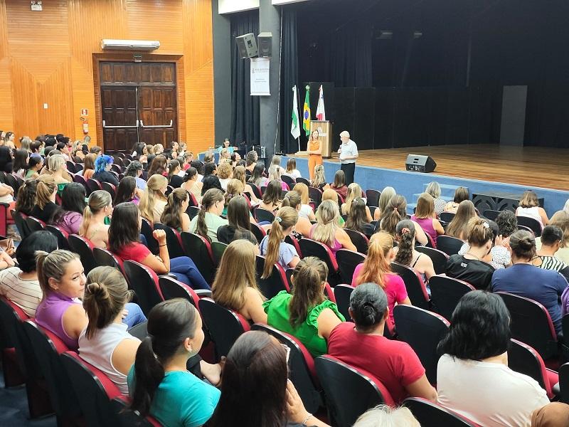 O início do ano letivo nas escolas da rede municipal de ensino de Nova Santa Rosa será na quarta-feira (05). Por outro lado, para os profissionais da educação, os trabalhos já começaram. Nesta segunda-feira (03), no Teatro Municipal Gustavo Fischer, está sendo realizada a Semana Pedagógica, evento organizado pela Secretaria de Educação e Cultura.