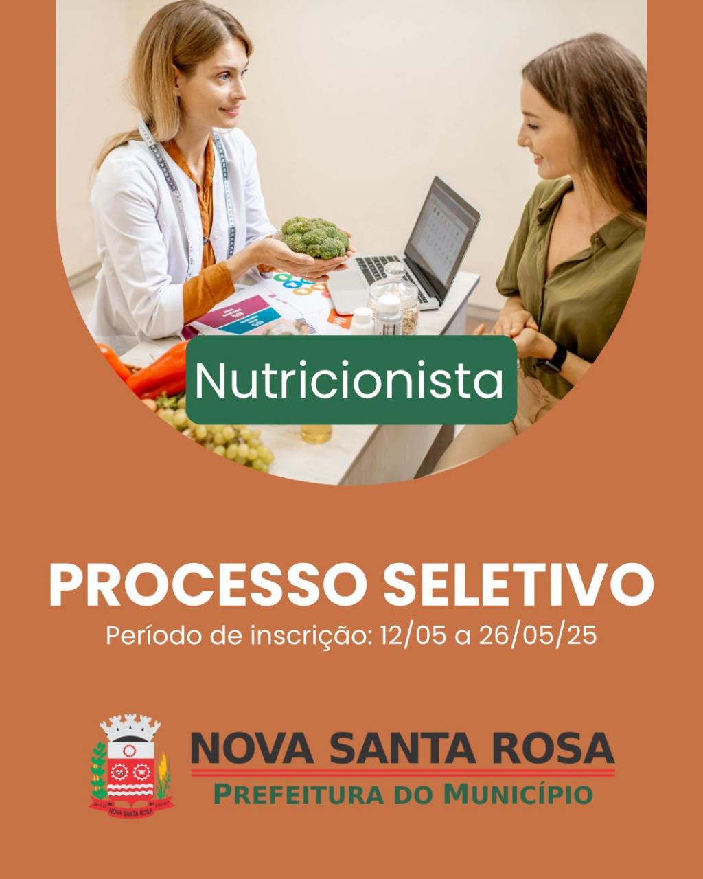A Prefeitura de Nova Santa Rosa informa que abrem na próxima segunda-feira (12) as inscrições para o Processo de Seleção Simplificado – PSS para o cargo de nutricionista.