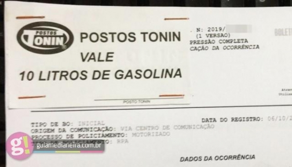 Segundo o relato do denunciante, ele teria entregado dois vales de 10 litros de combustíveis para uma pessoa que estava em um veículo.