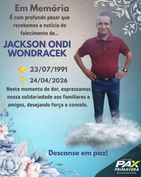 Faleceu nesta sexta-feira (24), aos 34 anos, Jackson Ondi Wondracek. O óbito ocorreu no Hospital Bom Jesus, em Toledo.