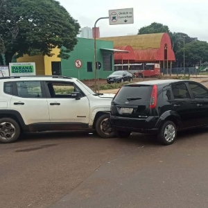 Um acidente de trânsito, entre um Jeep Renegade e um Ford Fiesta, ocorreu no final da manhã de hoje (15), na área central de Toledo, proximidades da rodoviária.