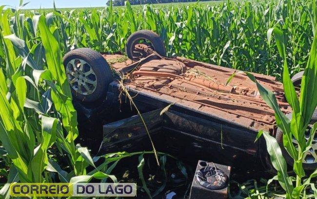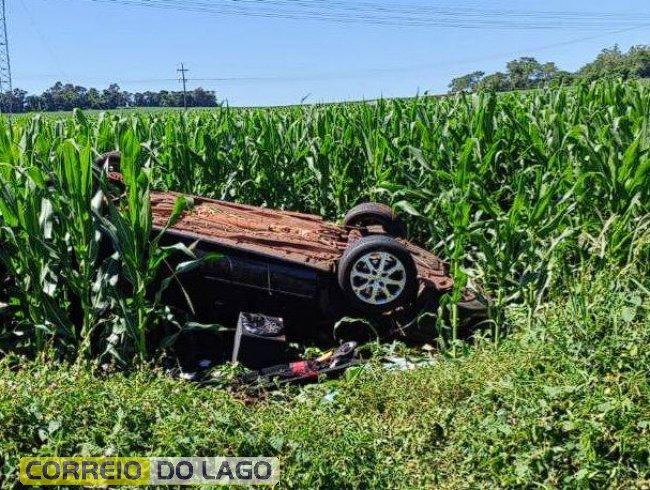 A Guarda Municipal foi acionada por volta das 10h50, via central 153, para atender à ocorrência. No local, constatou-se que o veículo saiu da pista e capotou sem a participação de outros automóveis, parando em uma lavoura de milho.