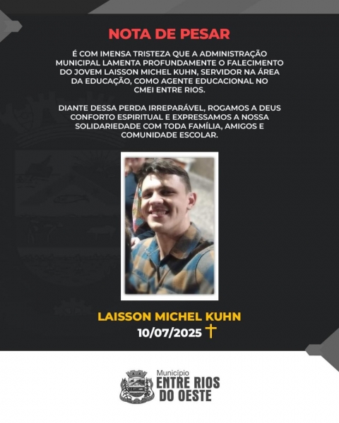 A prefeitura de Entre Rios emitiu uma nota de pesar pelo falecimento do jovem: