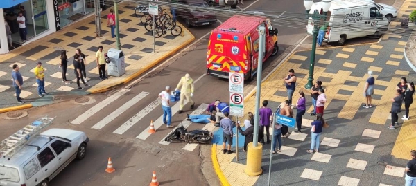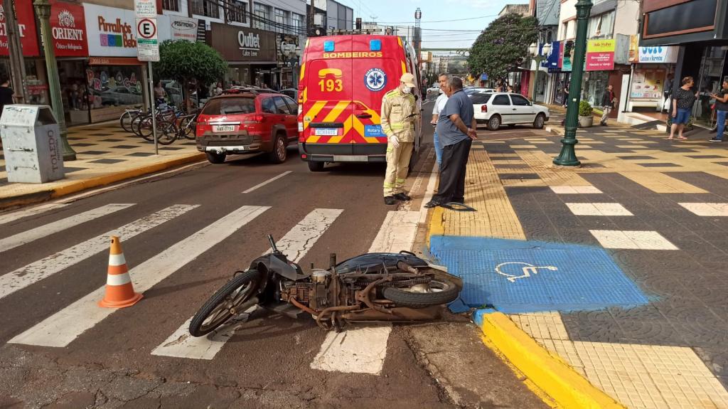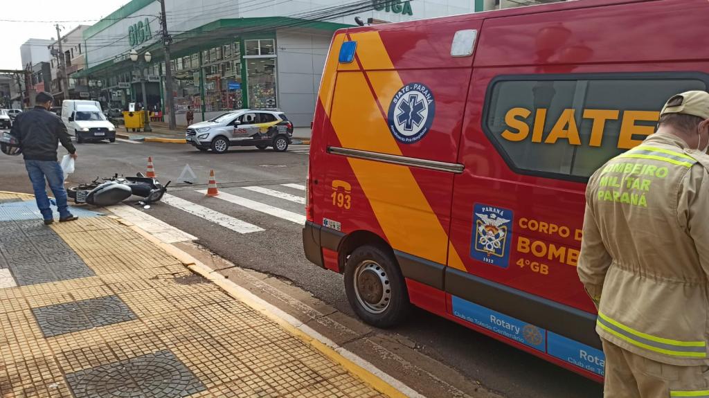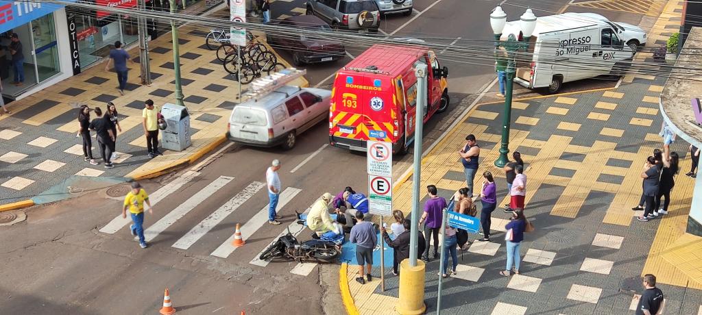Um acidente entre um carro e uma moto foi registrado por volta das 9h50 desta segunda-feira no cruzamento da rua Barão do Rio Branco com rua 15 de Novembro no centro de Toledo e envolveu uma moto Biz 125 cilindrada com placa Mercosul conduzida por uma moça de 21 anos e um veículo Ford EcoSport com placas Mercosul.