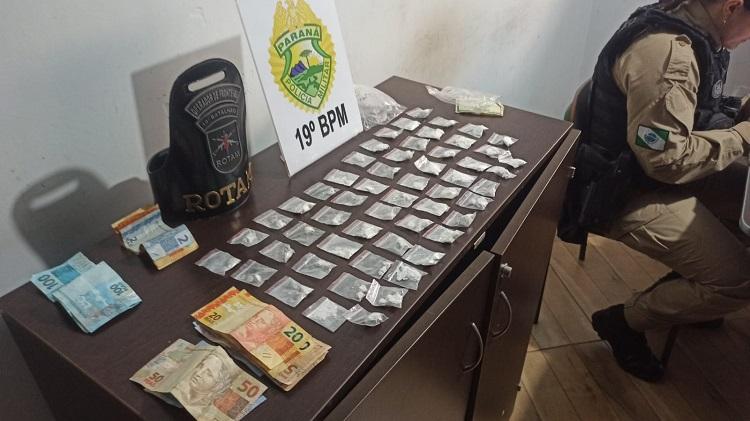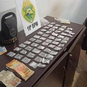 Com a autorização do jovem, a equipe realizou uma busca em seu quarto, localizado em uma residência compartilhada na região central da cidade. No local, foram encontrados mais R$ 296,00 em espécie e embalagens semelhantes às usadas para embalar as drogas.