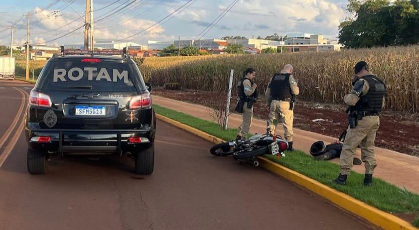 Durante um patrulhamento de rotina no bairro Boa Esperança, em Toledo, uma equipe da ROTAM abordou um motociclista suspeito que transitava com a placa do veículo ilegível. A ocorrência resultou na apreensão de 93 gramas de cocaína já fracionadas e prontas para comercialização.