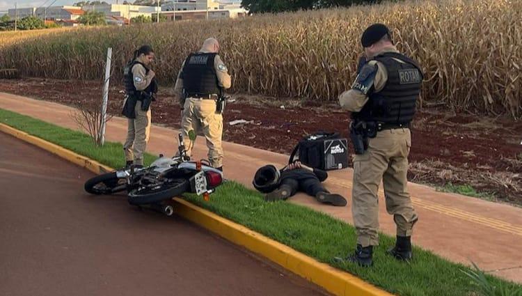 A abordagem aconteceu após o condutor, um jovem de 21 anos, demonstrar resistência em obedecer à ordem de parada e, ao descer da moto, jogar o celular no chão com força. Ao ser revistado, nada de ilícito foi encontrado consigo.