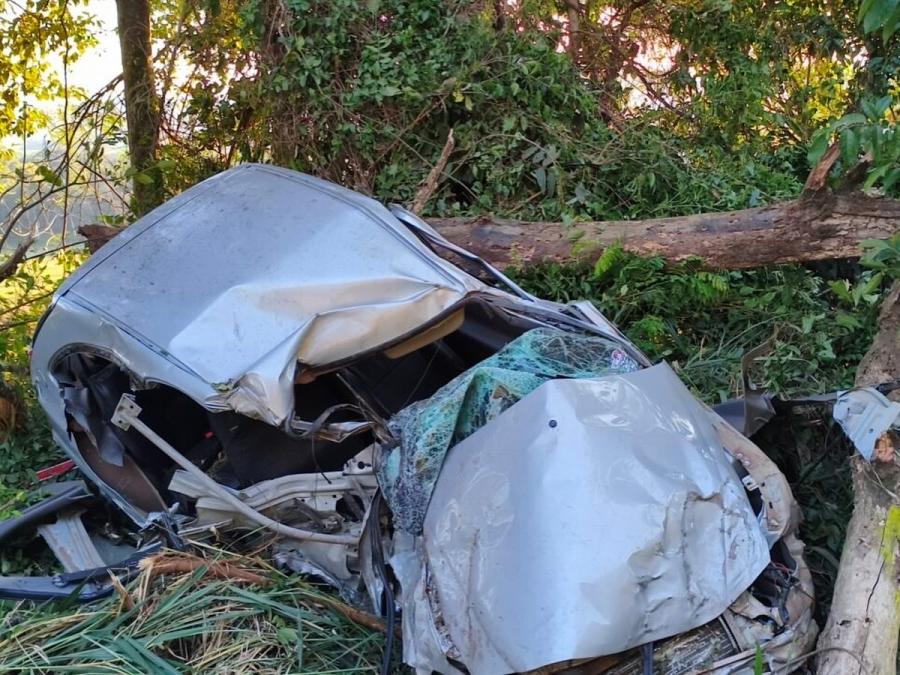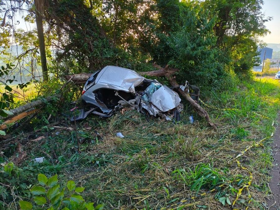 Eduardo e Ivo Felipe Zanella ocupavam o veículo Celta, que saiu da pista e colidiu violentamente contra uma árvore a margem da rodovia.
