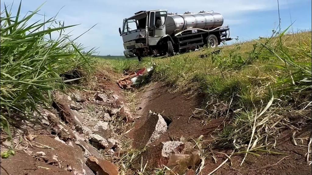 A saída de pista teria sido consequência de uma “fechada” de outro caminhão, que obrigou o condutor do veículo que transportava leite a desviar, mas ele acabou perdendo o controle da direção, no sentido Cascavel-Toledo.