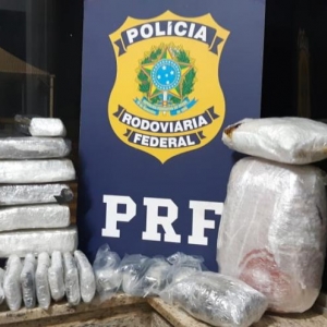 Por volta das 12h10 de sábado (07) a equipe PRF prendeu um homem de 25 anos transportando 65,2Kg de maconha.