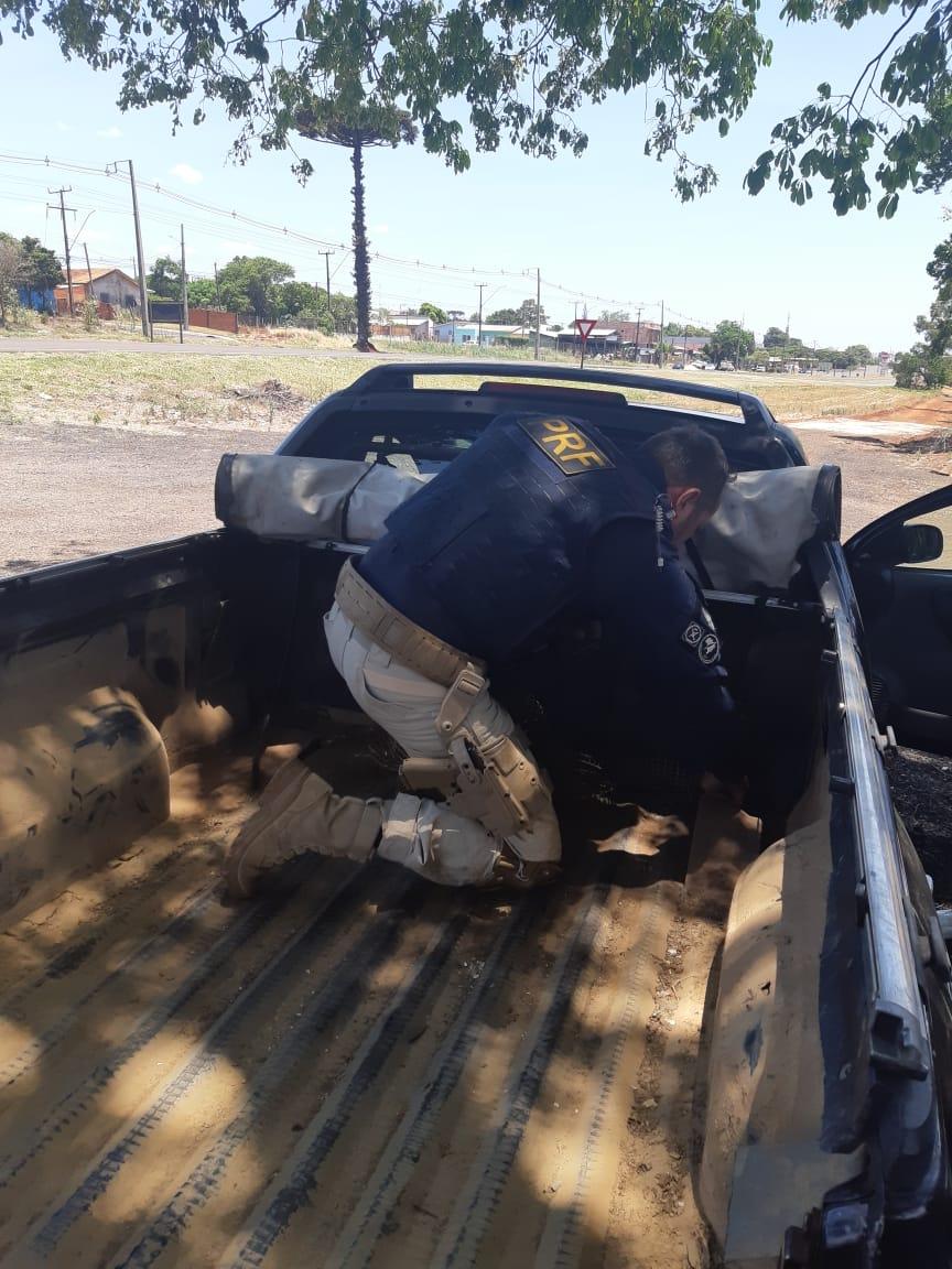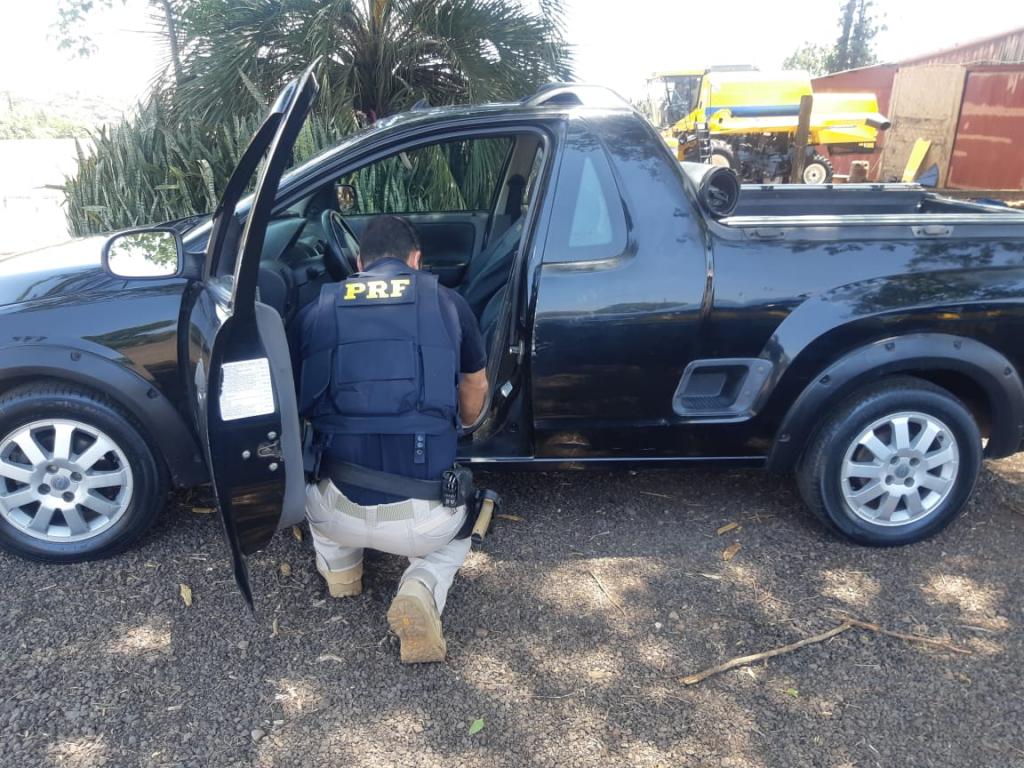 Durante ações de combate ao crime no Km 606 da BR 277, perímetro urbano de Santa Tereza do Oeste, os PRFs abordaram uma Camionete GM/Montana de placas de Curitiba.