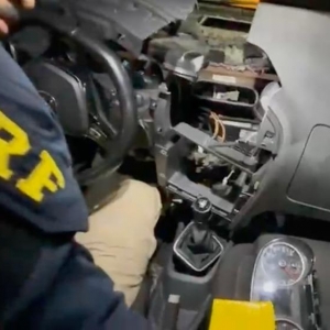 Durante a vistoria, os policiais perceberam sinais de adulteração no painel do veículo. Ao realizarem uma inspeção mais detalhada, encontraram um compartimento oculto de difícil acesso, onde estavam escondidos cerca de 17,4 quilos de cocaína, também conhecida como “ouro branco” devido ao seu alto valor no mercado ilícito.