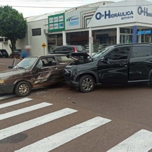 No final da manhã desta terça-feira (14), um acidente de trânsito do tipo colisão entre dois automóveis foi registrado no cruzamento da Rua Sarandi com a Rua Haroldo Hamilton, próximo à Câmara Municipal de Toledo, área central da cidade.