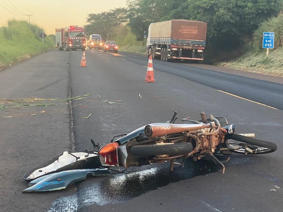 Um grave acidente de trânsito foi registrado por volta das 17h40 desta quarta-feira (13), na BR 163 entre Marechal Rondon e Mercedes. A colisão aconteceu no acesso secundário ao distrito de Novo Horizonte e envolveu um caminhão com placa do Paraguai e uma Biz com placa de Mercedes.