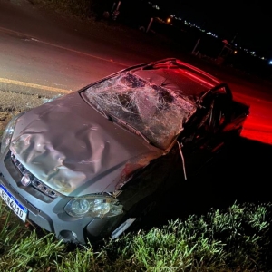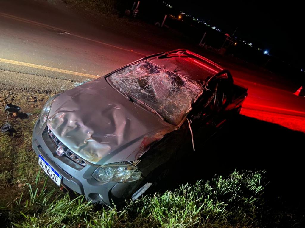 No início da madrugada desta sexta-feira um Fiat Strada capotou por diversas vezes após colidir contra a canaleta as margens da rodovia PR-239 sentido Assis Chateaubriand a Jesuítas.