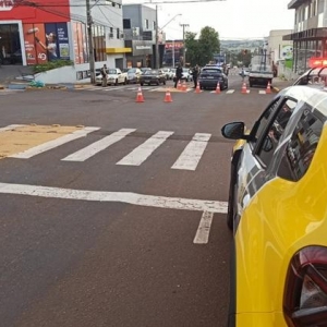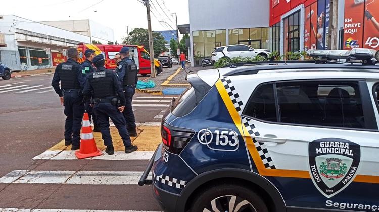 Uma colisão entre uma viatura da Guarda Municipal e uma motocicleta movimentou o centro de Toledo nesta terça-feira (20). O acidente aconteceu no cruzamento das ruas Piratini e Rui Barbosa, região de grande fluxo de veículos.