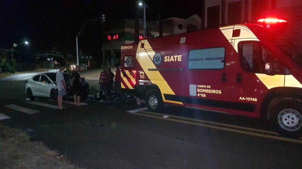 Socorristas do Siate foram mobilizados para atender uma vítima de acidente de trânsito, no Bairro Cascavel Velho, em Cascavel, na noite de sábado (23).