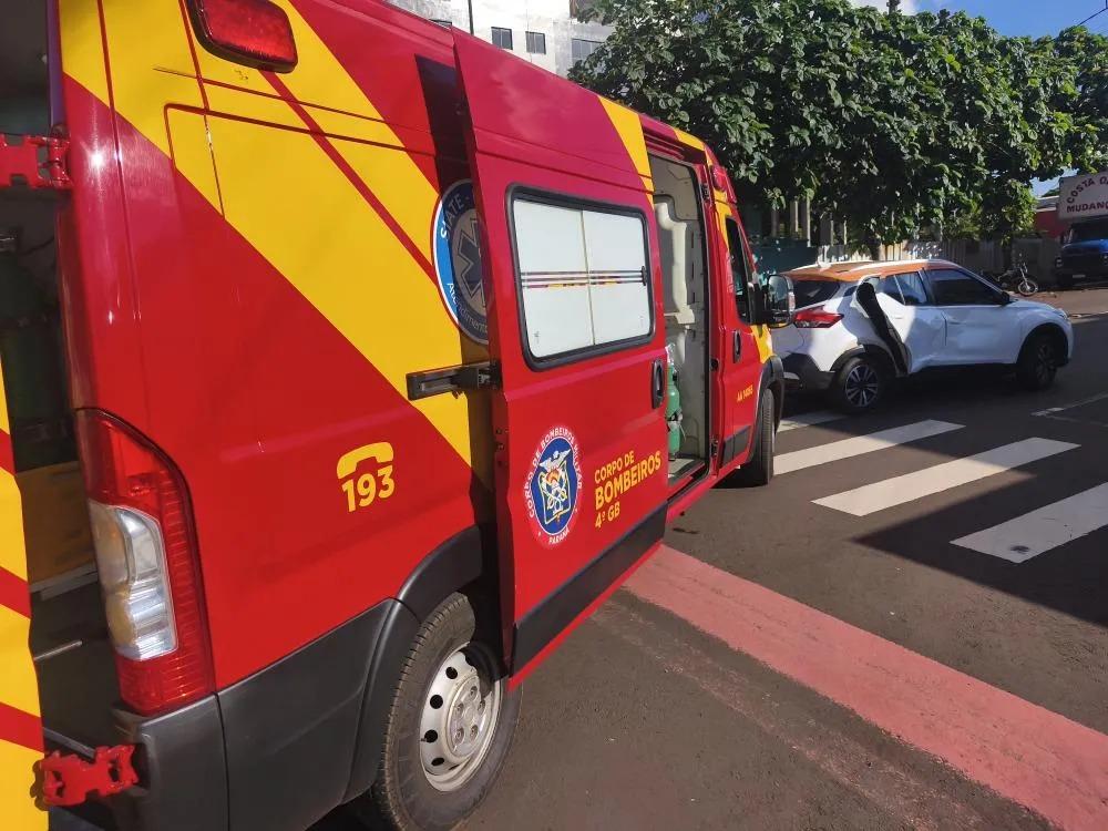 A ocorrência foi atendida por uma equipe do Corpo de Bombeiros no cruzamento da Rua Santa Catarina com a Rua Colombo, área central da cidade. O acidente envolveu uma motocicleta Honda CG 160 Cargo, de cor branca, e um automóvel Nissan Kicks S DCT CVT, também branco.