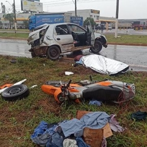 Na sequência, uma motocicleta colidiu na lateral do Celta, e a motociclista entrou em óbito na hora. Infelizmente, a motociclista perdeu a vida na hora e seus pertences ficaram espalhados na rodovia. Devido a força do impacto, o carro e a moto ficaram extremamente danificados. Além da morte de Andressa, uma mulher que estava no Celta ficou ferida e foi avaliada pelos socorristas do Samu e do Siate.