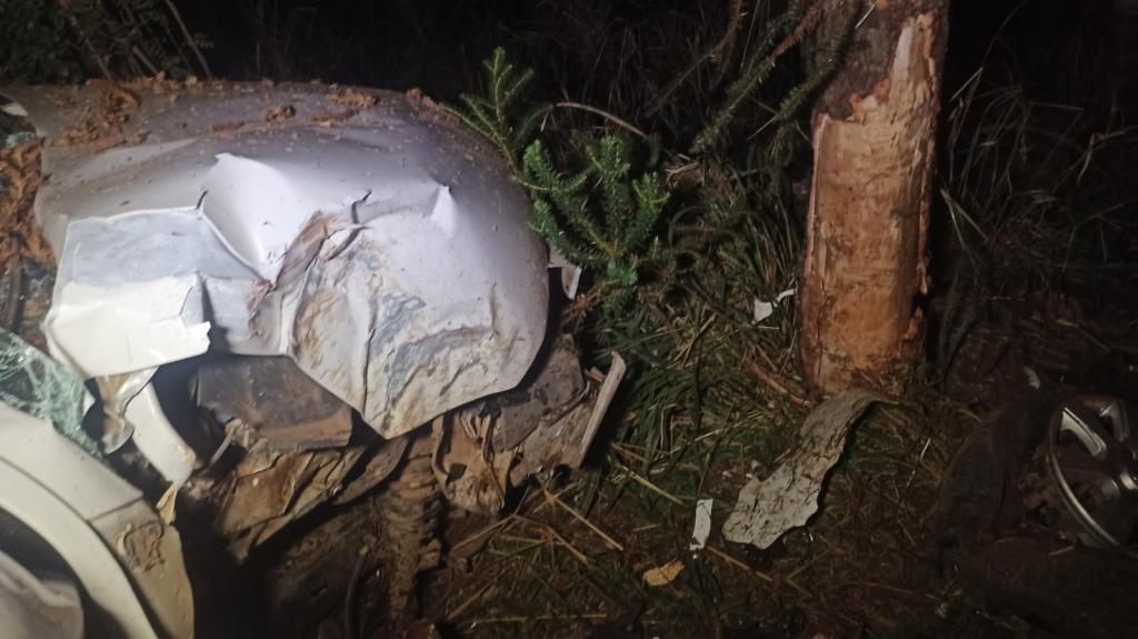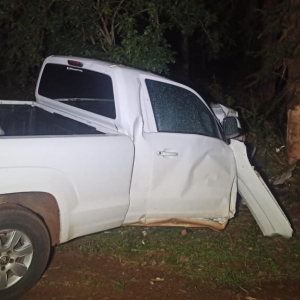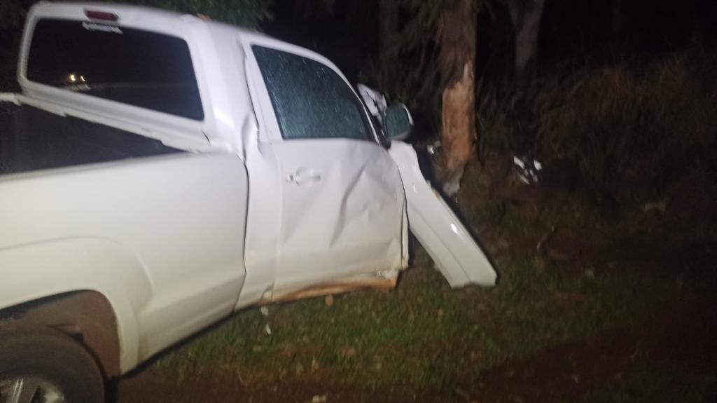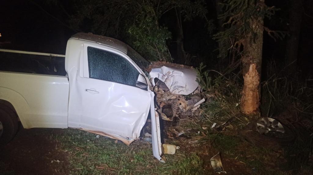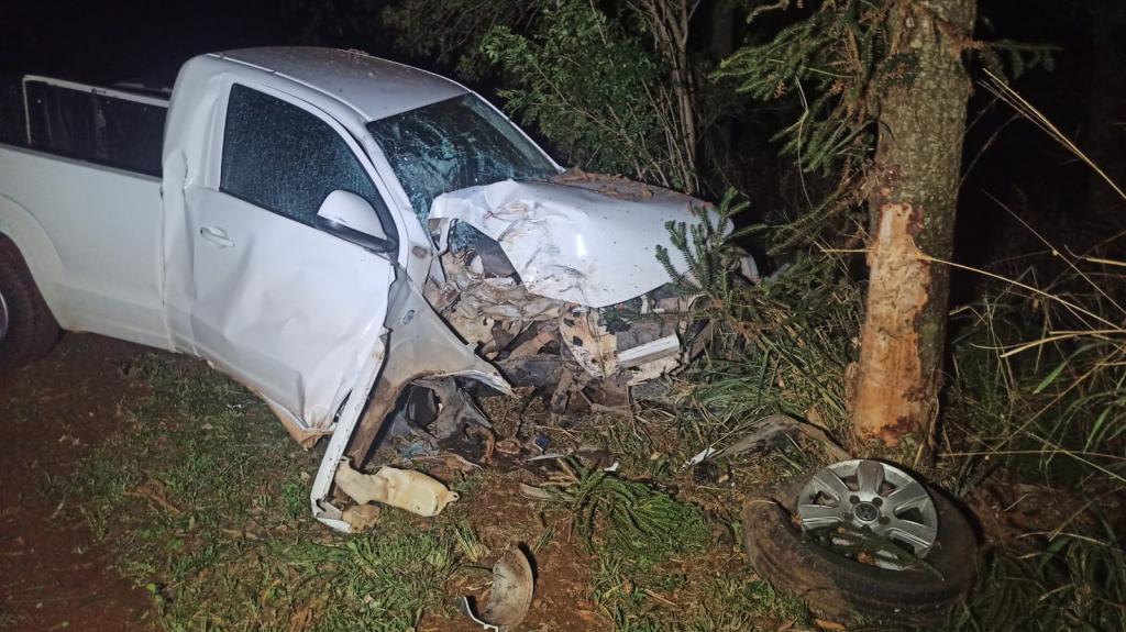 Na noite desta quinta-feira na rodoviária PR182 próximo ao trevo que dá acesso comunidade de Boa Vista em Toledo uma caminhonete Volkswagen Amarok com placas Mercosul conduzida por um jovem de 22 anos ficou destruída ao bater em uma árvore.