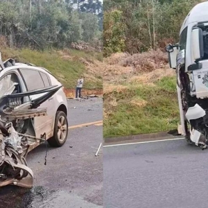 Um grave acidente ocorrido na tarde deste domingo (3) na BR-277, no trecho entre Teixeira Soares e Irati, resultou na morte de uma jovem de 21 anos e deixou outras duas pessoas feridas. A colisão aconteceu por volta das 16h, no km 223 da rodovia, e envolveu três veículos: um Chevrolet Cruze com placas de Guarapuava, um Volkswagen Gol de São José dos Pinhais e uma carreta.
