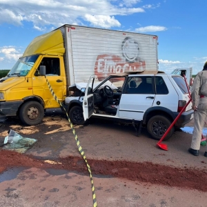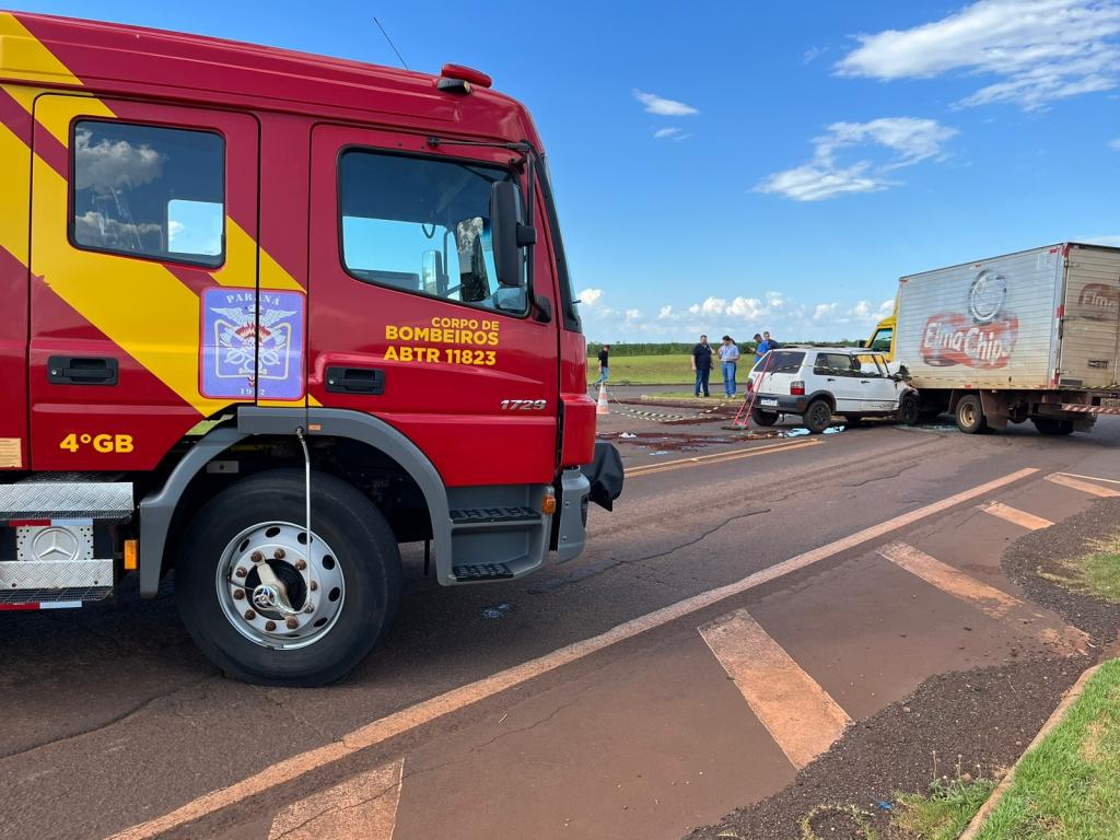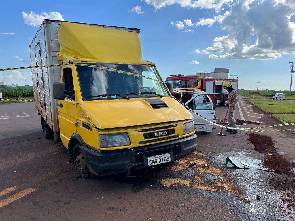 No Caminhão pai e filha não ficaram feridos, o Uno teve a gente bastante afetada no impacto.
