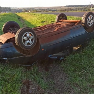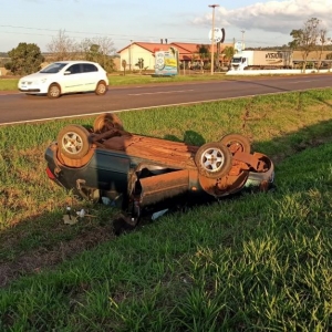 O veículo trafegava no sentido a Toledo e na curva o condutor perdeu o controle da direção, saiu da pista capotando no canteiro central ficando com as rodas para cima apesar do susto não teve vítimas.