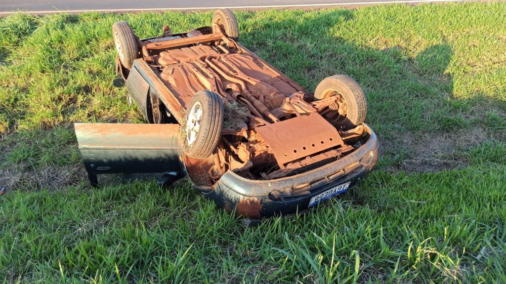 O Ford Fiesta com placas Mercosul conduzido por um jovem capotou na tarde deste domingo na rodovia que liga Toledo a Cascavel, BR 467, em frente ao Big Peixe,