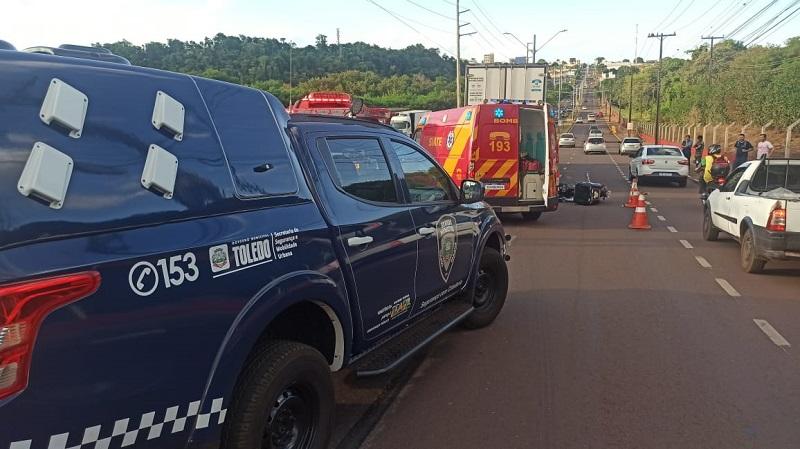 Na tarde desta segunda-feira (13), por volta das 17h50, Toledo foi palco de um grave acidente de trânsito na avenida Senador Atílio Fontana, próximo ao Posto Senador. O incidente envolveu uma carreta Volvo câmara fria e uma moto Honda CG Titan 160, ambas com placas do Mercosul.