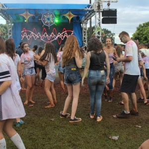 Nem mesmo a chuva, que caiu intensamente no meio da tarde de sábado, serviu para tirar o ânimo e reduzir a energia positiva que moveu jovens, crianças e adultos a pular e dançar durante a After Colors, em Maripá, neste sábado, 16. Realizada pela primeira vez em Toledo, em novembro no ano passado, a After Colors foi levada neste final de semana para Maripá, atendendo um compromisso da Kahena Espaço Natural, com um grupo daquela cidade. Eles participaram da festa em Toledo e pediram o evento também fosse levado para a sua cidade.