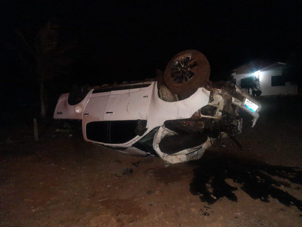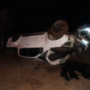 Com o impacto a caminhonete capotou. O condutor de 45 anos, teve ferimentos moderados e foi socorrido ao hospital em Enéas Marques pela equipe de saúde do município.