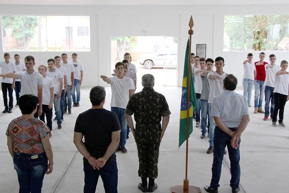 A Junta do Serviço Militar de Maripá realizou nesta terça-feira (23), no Centro Comunitário dos Bairros, a cerimônia de Juramento à Bandeira e entrega do Certificado de Dispensa de Incorporação (CDI) a 36 jovens maripaenses. O ato foi conduzido pelo capitão Wilson Moreira de Souza, chefe do Posto de Recrutamento e Mobilização de Cascavel (PRM), pelo subtenente Ivan Santos de Oliveira e o soldado Evandro Gomes da Silva.