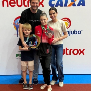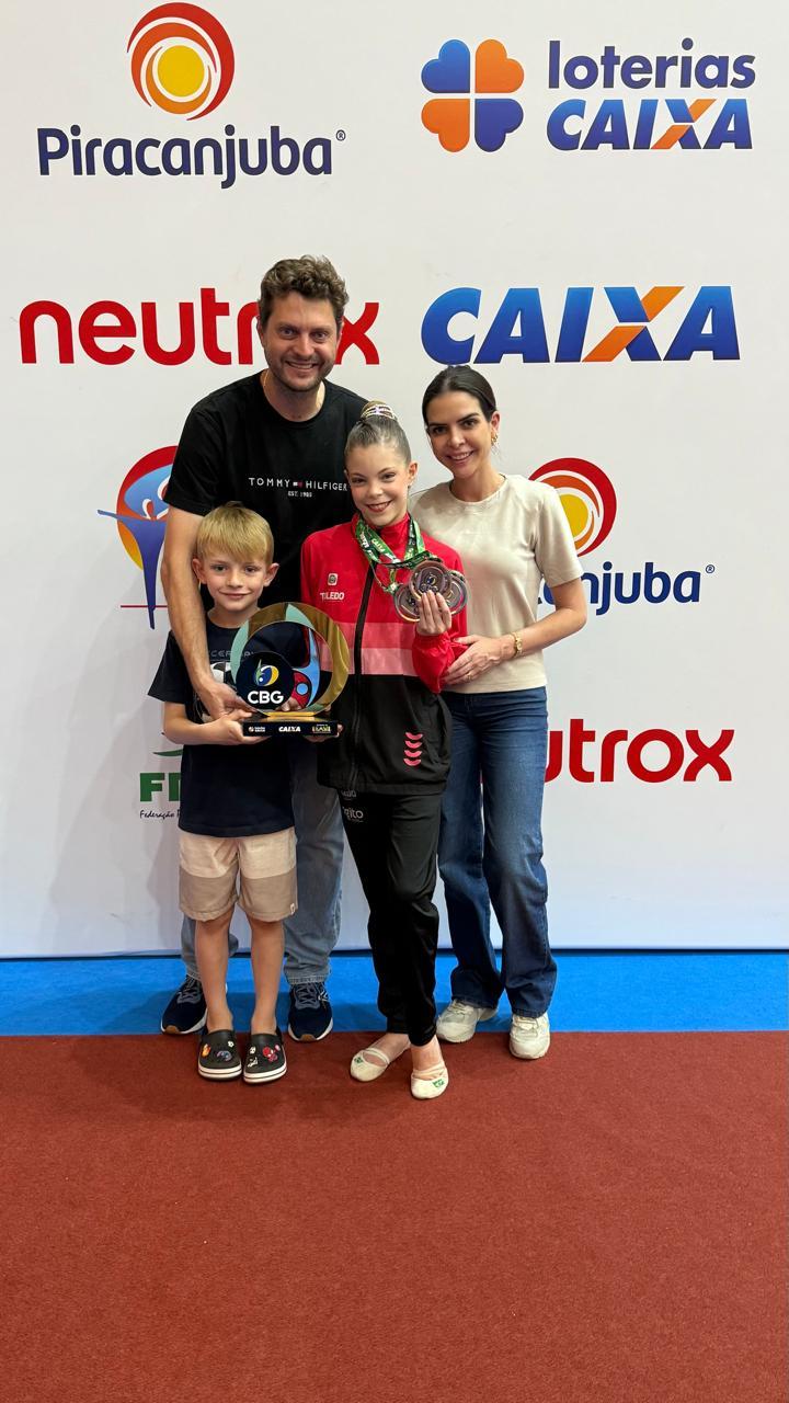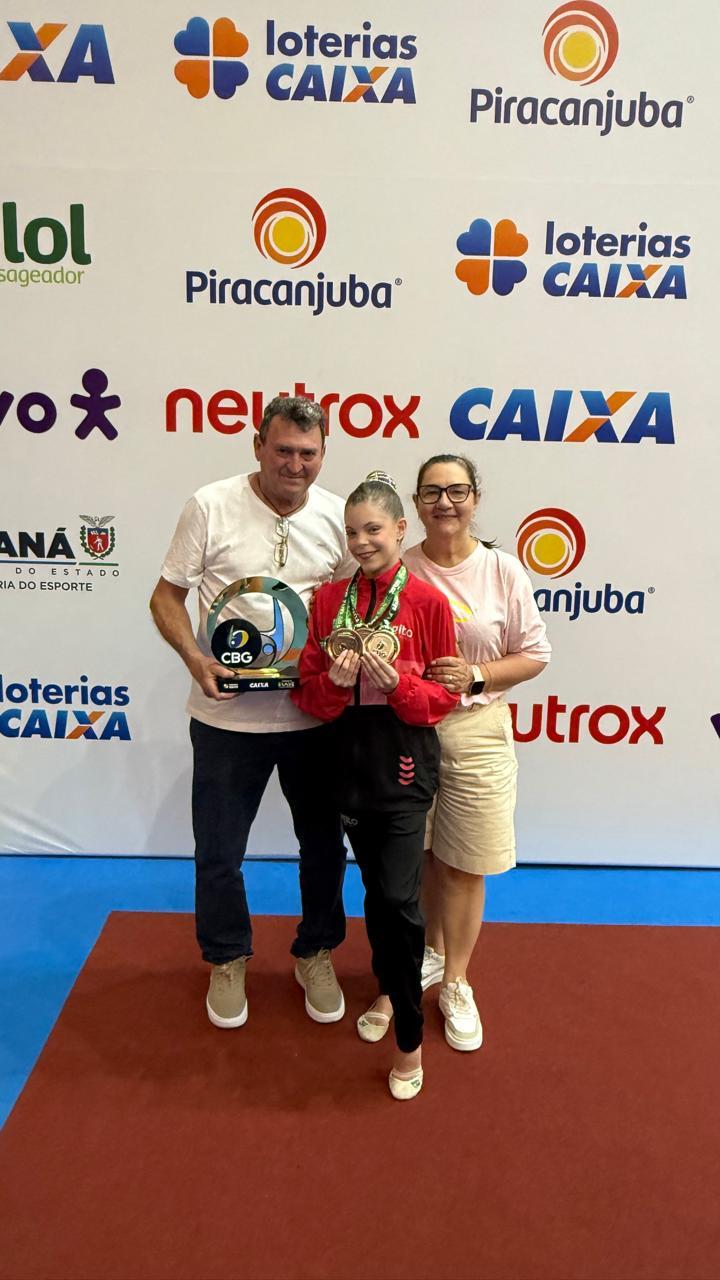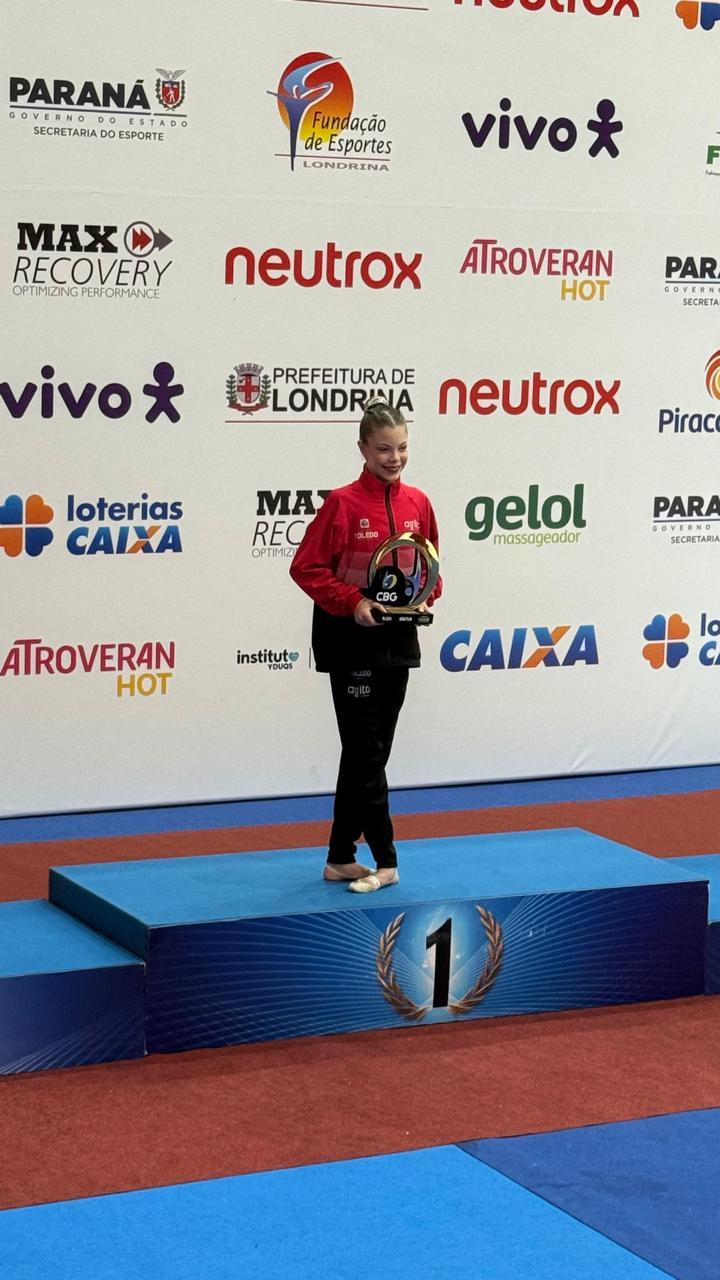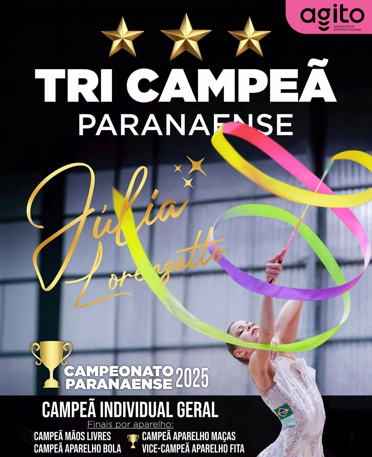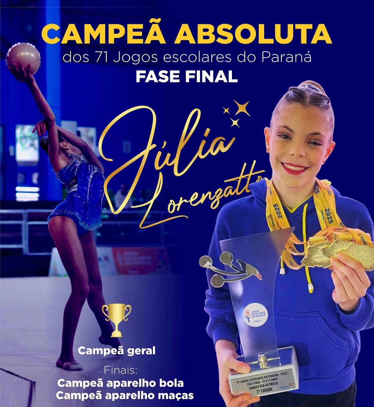 A ginasta Júlia Valentina Santos Lorenzatto brilhou mais uma vez e conquistou o título de Campeã Brasileira 2025 na categoria Infantil (Divisão 4), durante o Campeonato Brasileiro Loterias Caixa de Ginástica Rítmica Infantil e Pré-Infantil, realizado em Londrina entre os dias 30 de setembro e 5 de outubro. A jovem esteve acompanhada de sua treinadora Gracieli Morais.