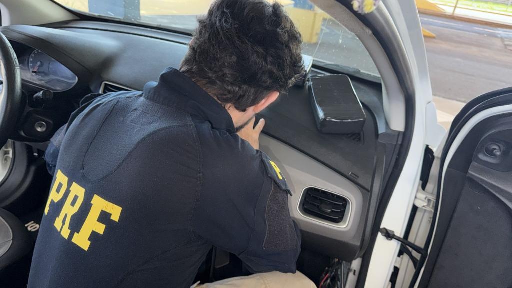 O carro, um Chevrolet Onix, era conduzido por um homem de 38 anos e transportava ainda sua esposa e dois filhos menores, de aproximadamente 4 e 1 ano de idade. Durante a fiscalização, o condutor apresentou sinais de nervosismo, o que motivou uma verificação mais detalhada.