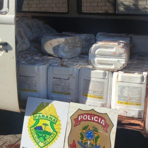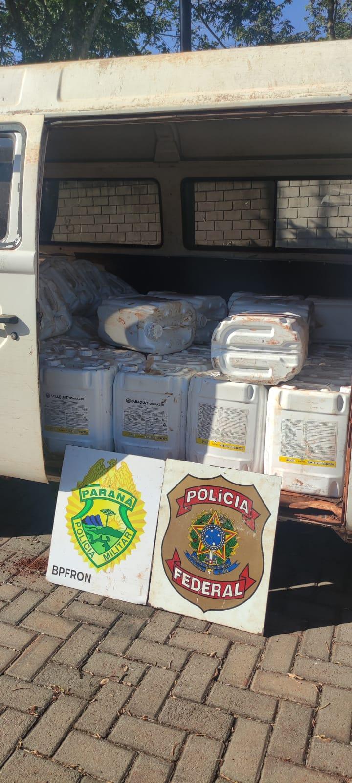 Quando das buscas, foi constatado que a Kombi estava carregada com cerca de 50 (cinquenta) galões de 20 (vinte) litros de agrotóxico de origem paraguaia.