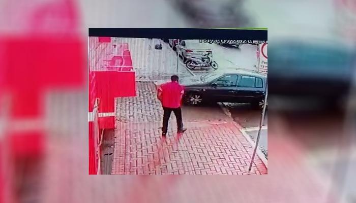 O proprietário estava próximo e carregava o carro com mercadorias e flagrou a situação, que também foi registrada por câmeras de segurança.