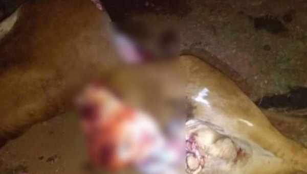A equipe Polícia Militar realizou patrulhamento nas proximidades e localizou os restos do outro animal já esquartejado. Nenhum suspeito foi localizado.