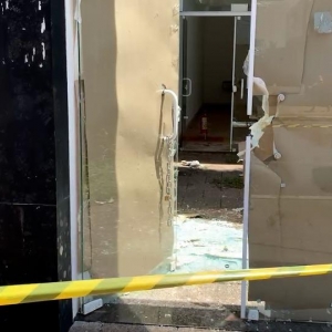 Durante a madrugada, os ladrões destruíram a parede, conseguindo acesso ao interior do estabelecimento. Eles também furtaram o dispositivo que armazenava as imagens de câmeras de monitoramento.