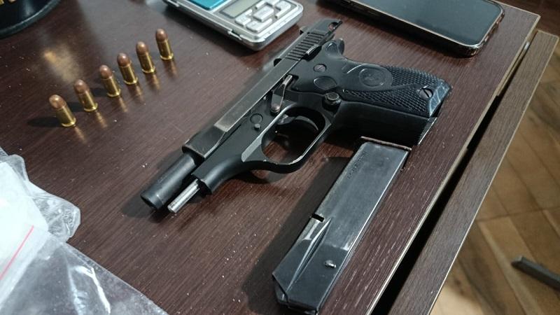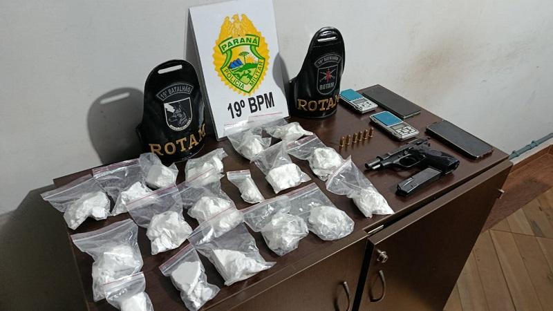 Com o apoio de uma equipe especializada com cão farejador, os agentes foram até o imóvel indicado. O cão indicou a presença de entorpecentes em vários pontos da casa. Foram encontradas grandes porções de cocaína escondidas em uma lavanderia, dentro de um cesto de roupas, no guarda-roupas e até no rack da sala. Também foram apreendidas balanças de precisão, embalagens utilizadas para o fracionamento da droga e uma pistola calibre .380 com seis munições intactas, localizada em uma cama da sala.