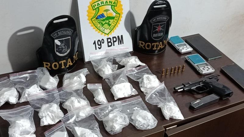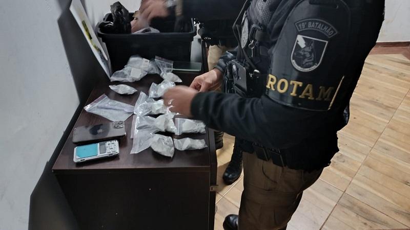 As equipes realizavam patrulhamento quando visualizaram um grupo em frente a um veículo em situação irregular. A movimentação chamou atenção e, durante a abordagem, uma pequena porção de maconha foi localizada com um homem de 49 anos. No carro, os policiais encontraram cerca de 25 gramas de cocaína. Um dos abordados, de 24 anos, assumiu ser o dono da substância.