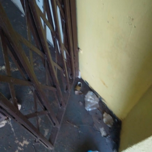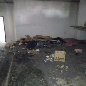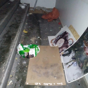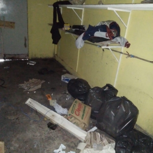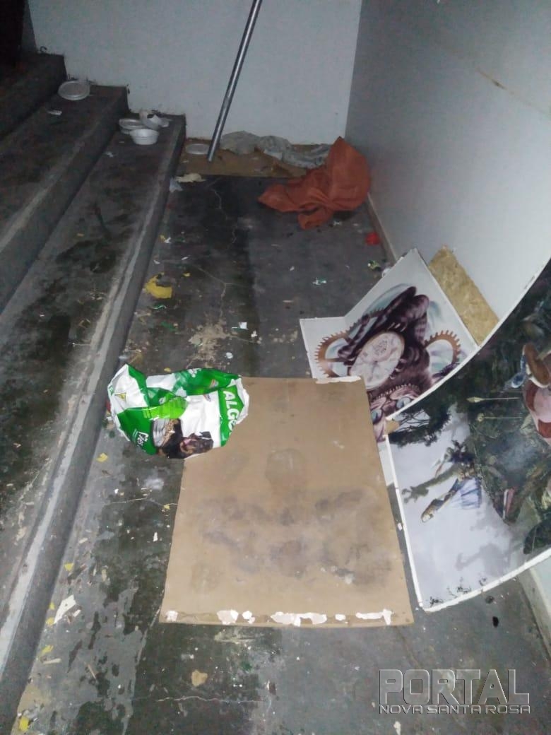 O que se encontra no interior, é portas, fiação, grades destruídas, colchoes, peças de roupas e objetos de moradores de rua.