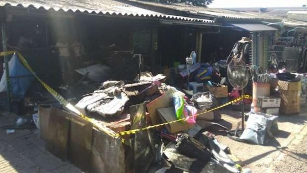 Uma das lojas queimou 100% das mercadorias, móveis, telhado. As outras três bancas foram parcialmente queimadas, cerca de 75% foi perdido.