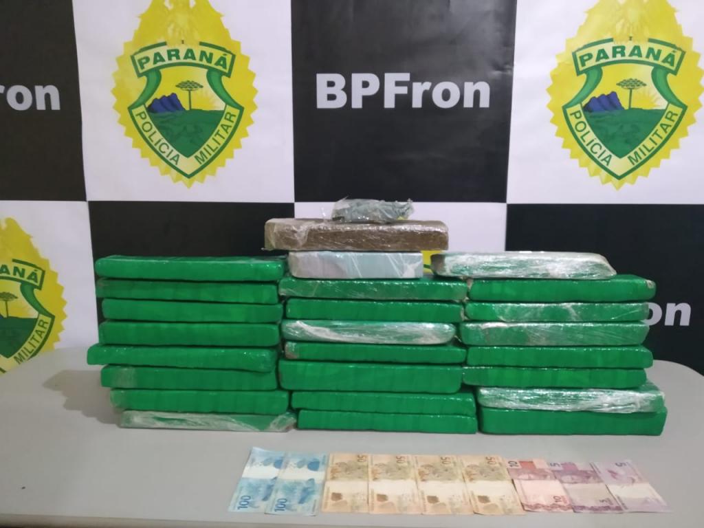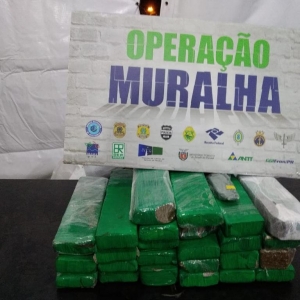 Durante a Operação Muralha na noite de ontem, por volta das 23h50min, policiais militares do BPFRON após abordagem à ônibus na Ponte Ayrton Senna, BR 163, constataram nos pertences de um jovem de 20 anos de idade, cerca de 16,5 kg de maconha, divididos em duas malas e a quantia de R$424,50 em espécie.