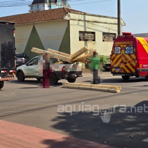 Durante o atendimento às vítimas no local, uma picape carregada com tábuas de madeira perdeu parte da carga no mesmo cruzamento em que minutos antes ocorreu o acidente.