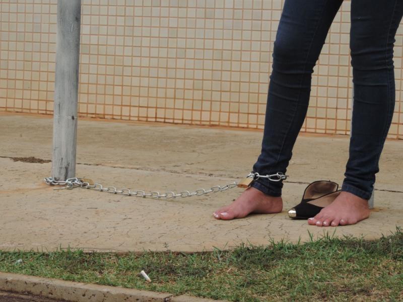 Uma cena inusitada, chocante até, chamou atenção dos toledanos que passavam pelo Fórum na última quarta-feira, 25. Uma mãe tomou a atitude desesperada de se acorrentar em frente ao Fórum. O ato de Sidneia Lucas de Oliveira foi uma forma de protesto por conta da prisão de seu filho, Bruno Vinícius Lucas de Oliveira, de 19 anos, que está preso há aproximadamente 30 dias.