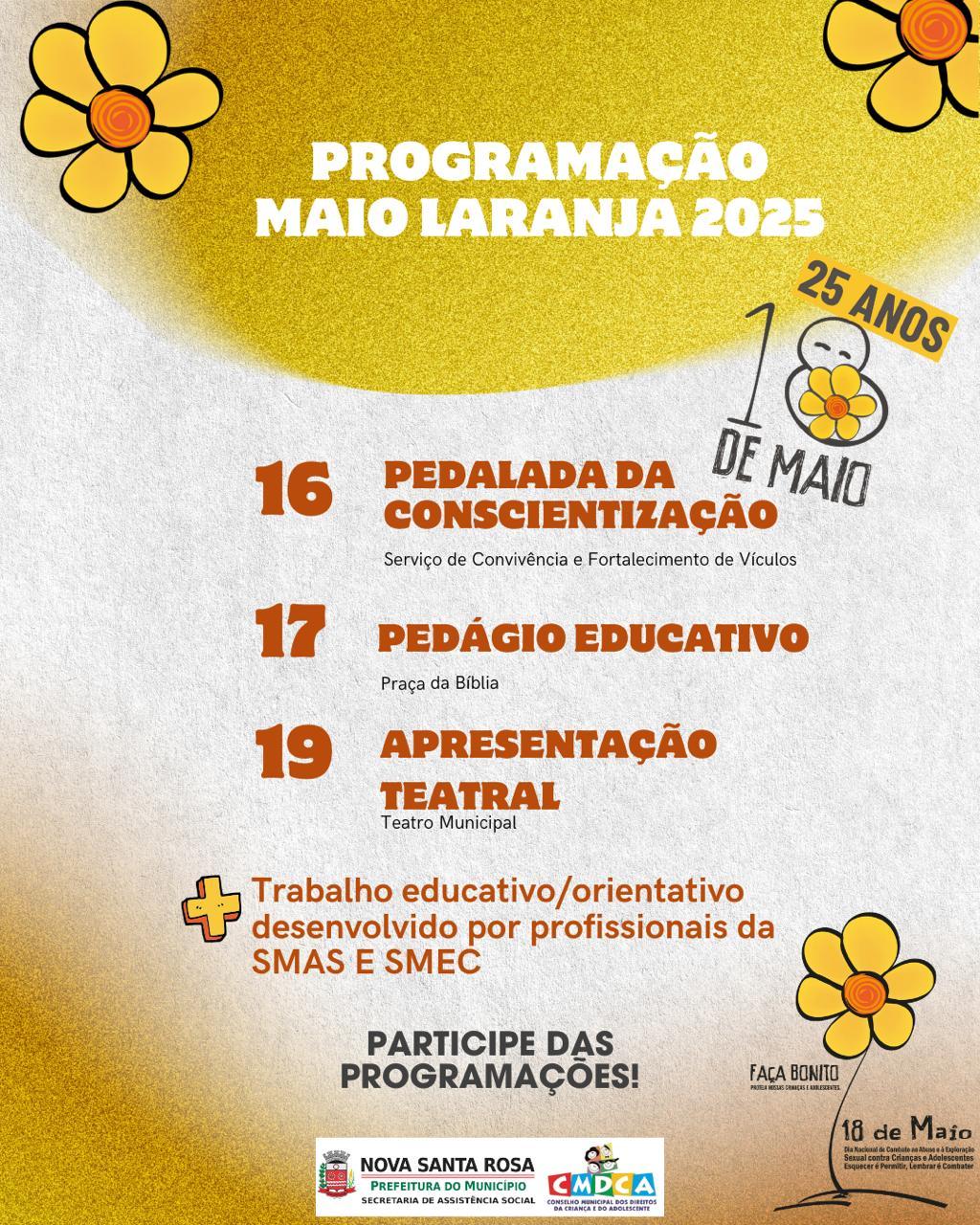 A Campanha Maio Laranja tem como objetivo mobilizar a sociedade para o enfrentamento à violência sexual contra crianças e adolescentes, promovendo espaços de diálogo, informação e fortalecimento da rede de proteção.